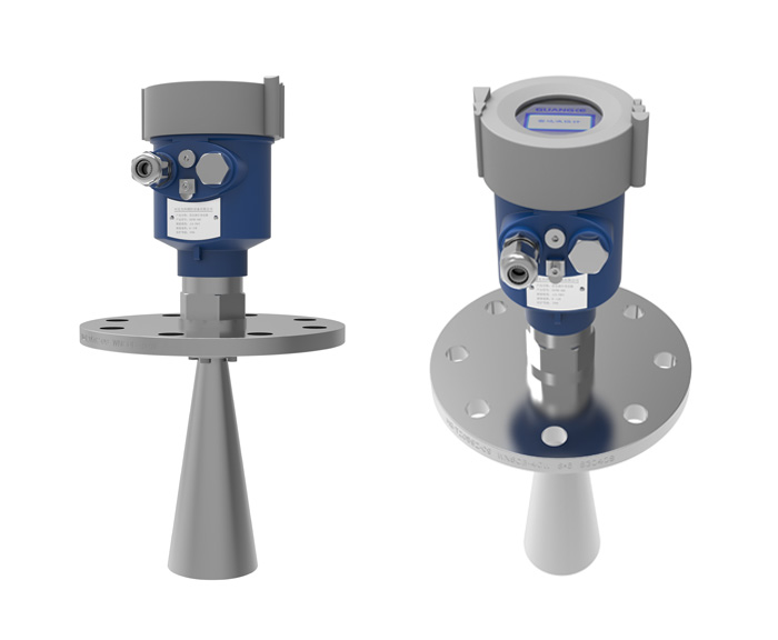 安裝要求:一般采用標準法蘭安裝到罐頂,也可采用旁通管安裝,導波管安裝等多種方式。高頻雷達放置在罐體直徑的1/4或1/6處,距罐壁不小于200mm,26G天線伸入到罐里至少10mm;測量錐形罐體,應安裝在錐形罐體平面的中間,保證可以測量到錐形頂部;測量有堆料的罐體,法蘭選型應選擇萬向法蘭(可調節方向)。